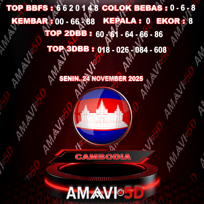★PREDIKSI TOGEL CAMBODIA 24 NOVEMBER 2025★ Selamat Datang dan Selamat Bergabung di Situs Prediksi Togel Online. Permainan Togel Online saat ini telah menarik banyak perhatian para bettor di Indonesia. Jika dulunya Anda harus menikmati permainan togel melalui bandar togel darat, maka sekarang ini Anda hanya perlu mempercayakan AMAVI5D sebagai Bandar Togel Online Resmi dan Terpercaya. Melihat semakin tingginya minat para pecinta togel online, kami menyediakan Situs Prediksi Togel Online dan Bocoran Togel Jitu yang bisa Anda jadikan sebagai acuan sebelum melakukan pemasangan angka togel.