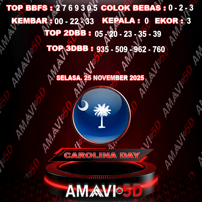 ★Prediksi TOGEL CAROLINA DAY AMAVI5D 25 NOVEMBER 2025★